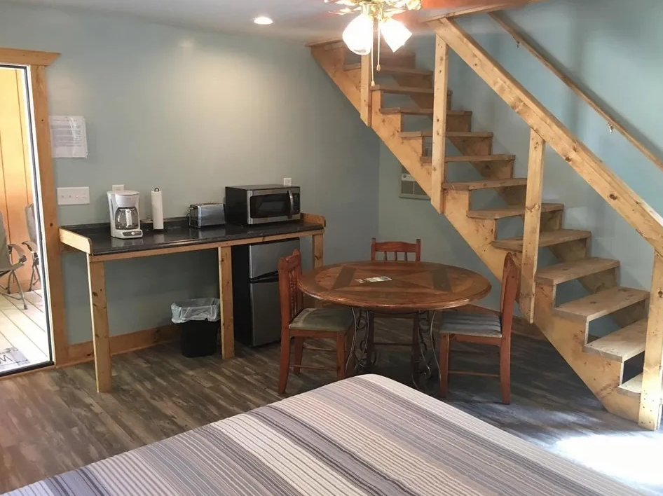Apartment-Sized Refrigerator, Microwave, Coffee Maker and Toaster, Table and Chairs (dining or gaming)