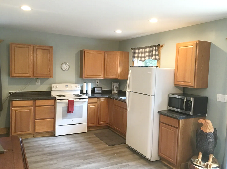 Electric Stove, Full Refrigerator, Microwave, Serving ware (based on max capacity), Cooking and serving utensils, Coffee Maker and Toaster, Kitchen towels, Serving Pads, Table and Chairs (dining or gaming)